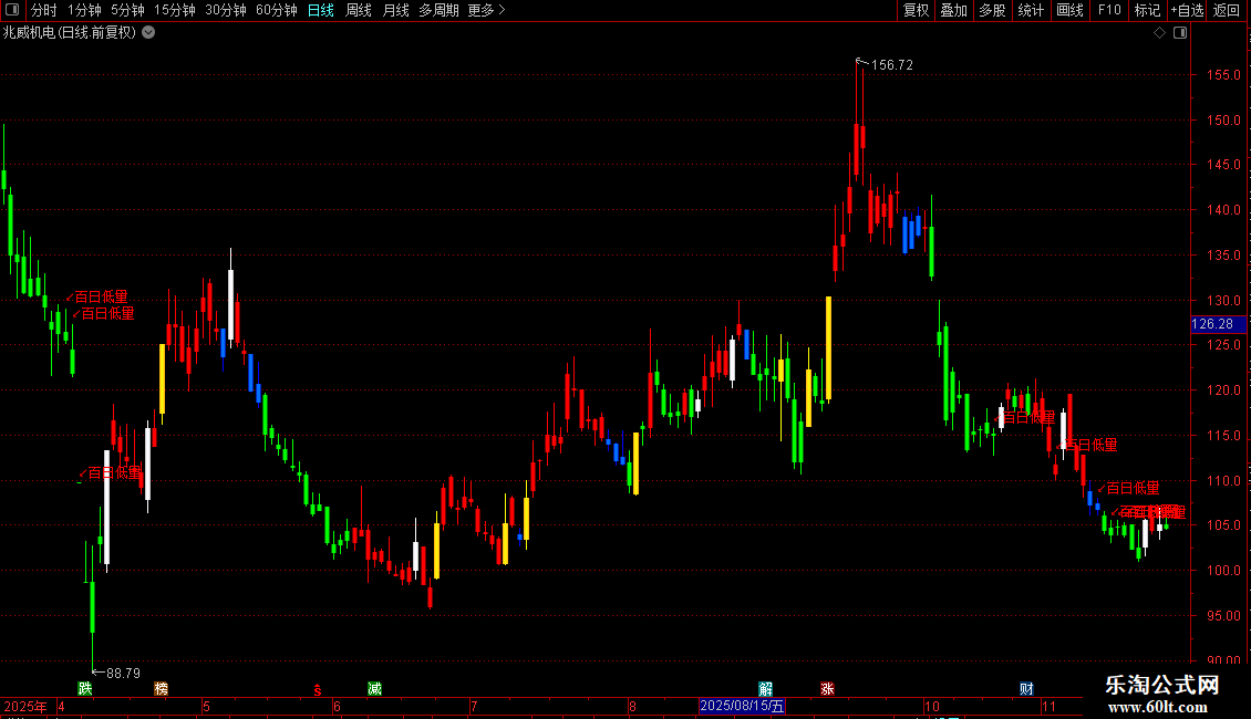 百日低量:=(VOL=LLV(VOL,100))*TIM;