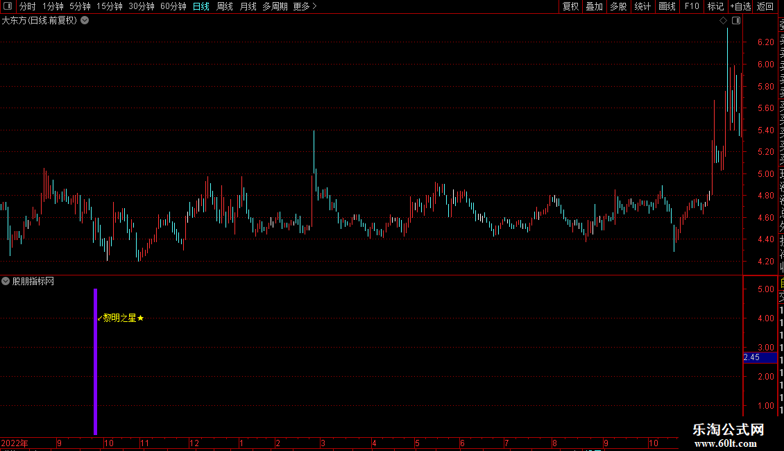 - 📈 副图应用:当出现粉色柱状线及“↙黎明之星★”文字提示时,密切关注