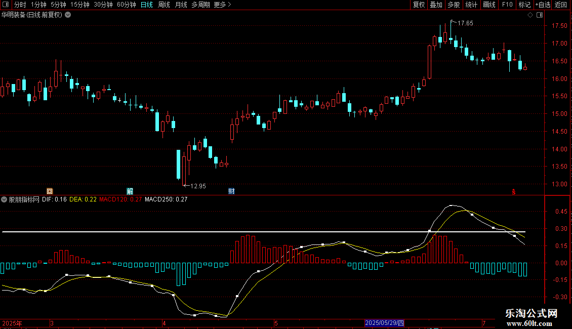 MACD250:REF(MACD/2,BARSLAST(MACD=HHV(MACD,250))),COLORWHITE,LINETHICK2;