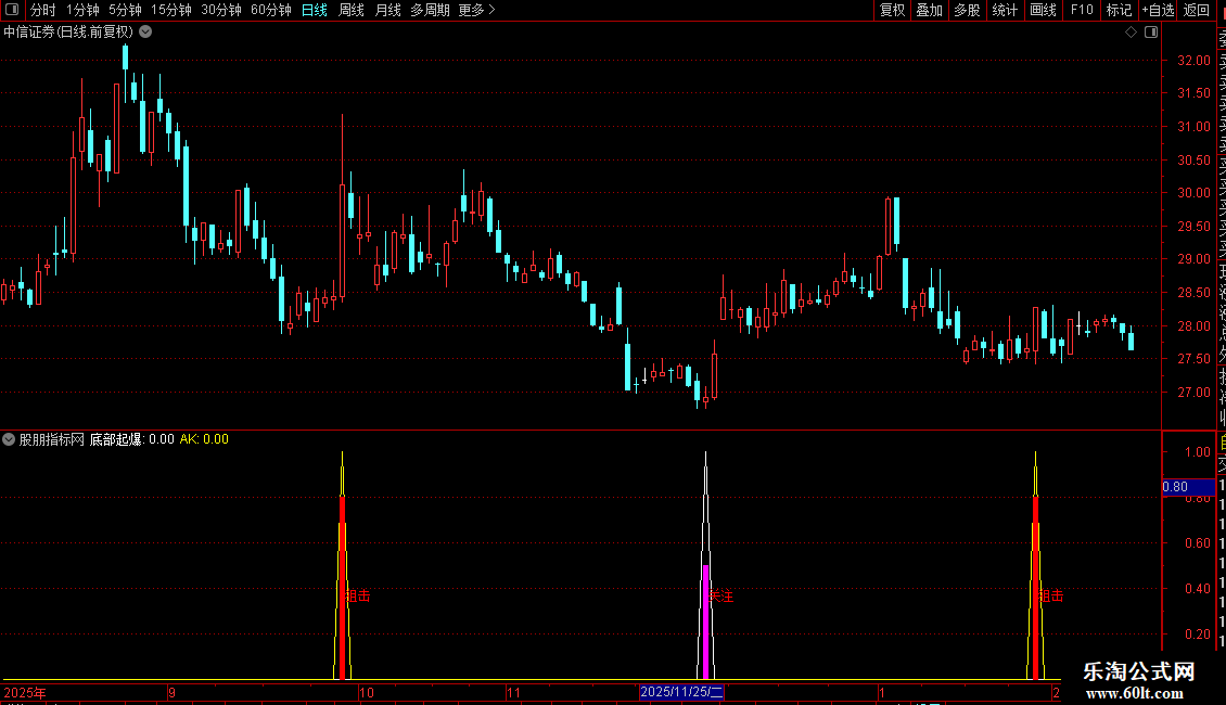 使用方法:加载至通达信副图。当指标在低位出现红色的“关注”或“狙击”信号柱时,表明个股可能处于起爆临界点,可结合趋势与盘面情况予以重点关注。