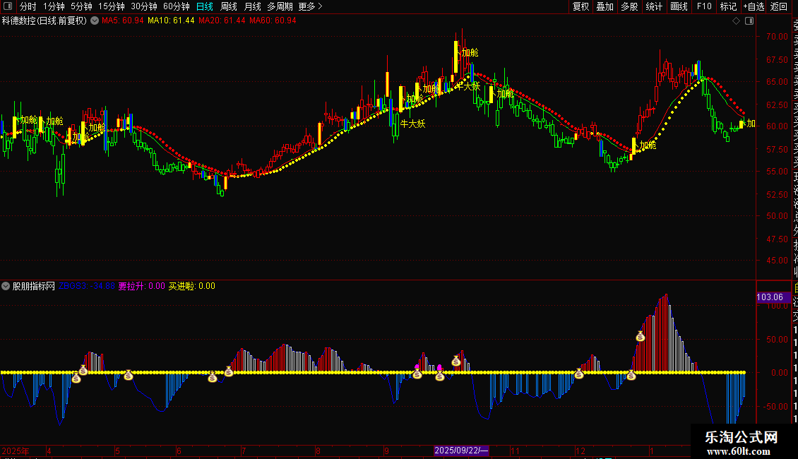 1. 主图看趋势与关键信号标注,副图验证资金动能,公式精准筛启动股;