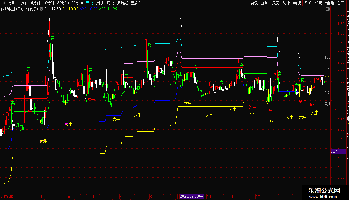 注意公式给出的短牛 中牛 大牛等股票技术公式信号 它们代表不同程度的上涨潜力 是进入市场的良好提示