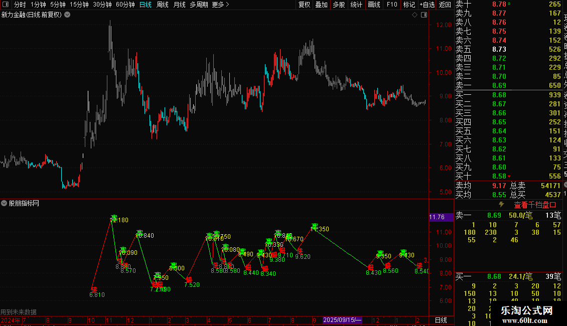 在出现“低”信号的下一根K线,于其最低价下方标记红色“进”字,作为买入参考。