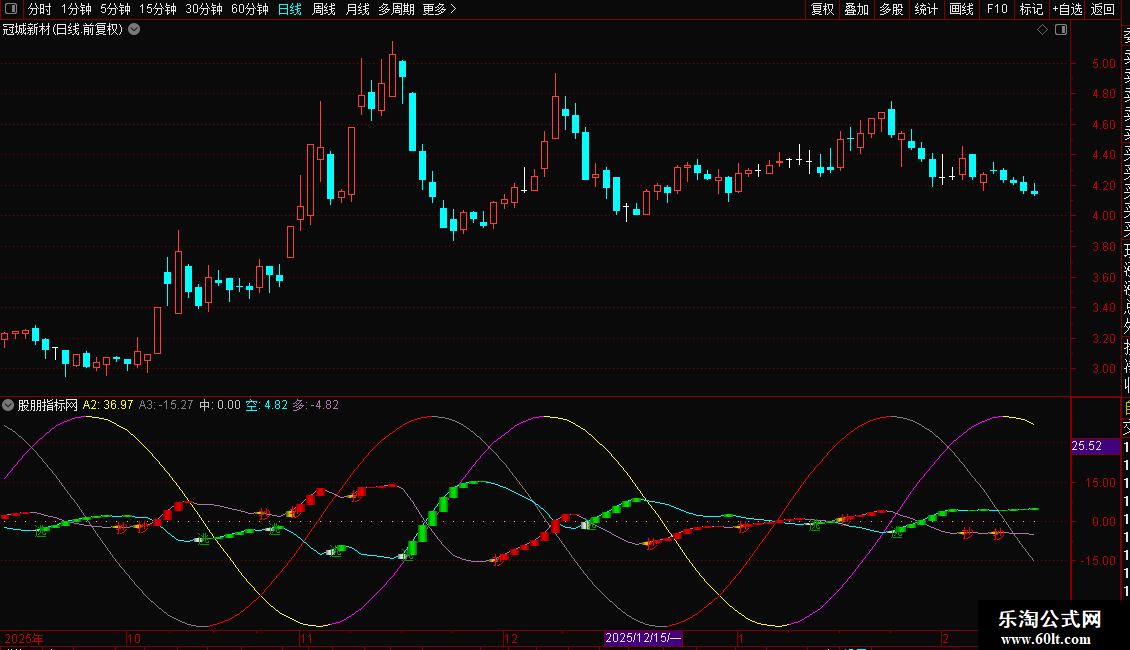 A3线(灰色/红色):基于交易周期数计算的余弦波动线。当A3线向上时显示为红色,向下时显示为灰色。与A2线共同构成波动参考。