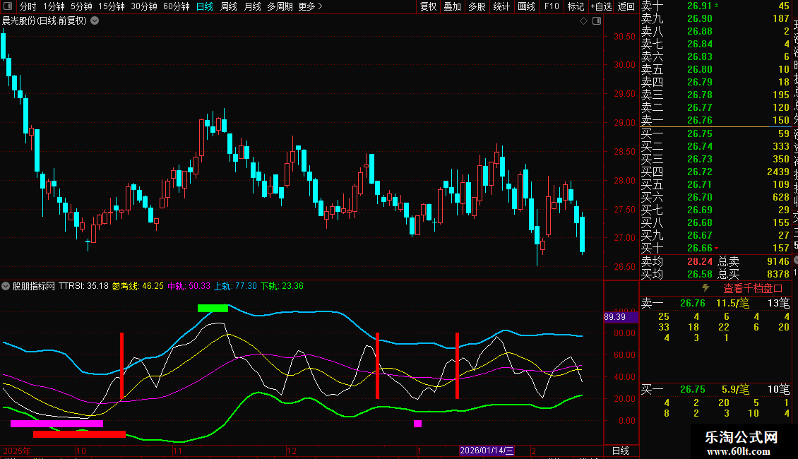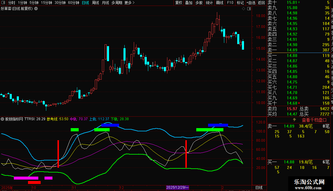 下轨: 中轨- 2*STD(TTRSI,26),LINETHICK2,COLOR00FF00;