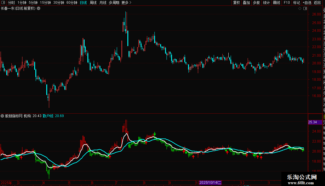 3. 机构与散户线:通过两条不同周期的均线(6日和18日)来粗略模拟“机构”与“散户”的成本趋势,其相对位置和交叉可辅助判断资金力量对比。