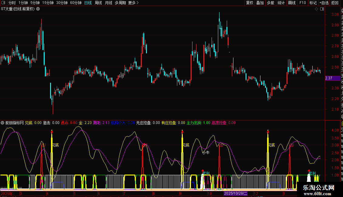 2. 短期狙击信号:包含“慧眼”、“套利”、“小牛”等多个短期买入信号,通过不同条件交叉和形态判断,提示短线机会。