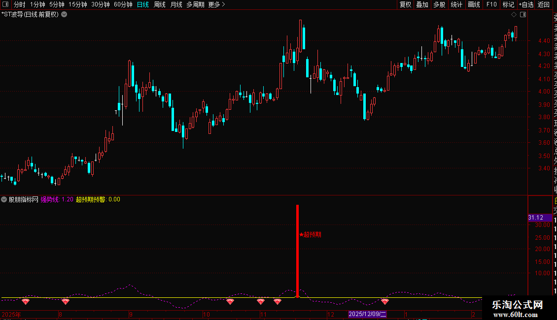 DRAWICON(CROSS(强势线,超预期预警),超预期预警*1.002,25);