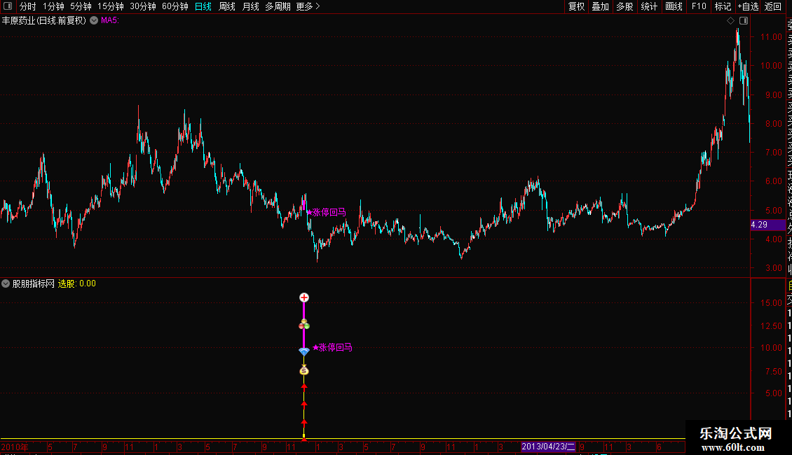 DRAWTEXT(选股,10,' ★涨停回马'),COLORFF00FF;