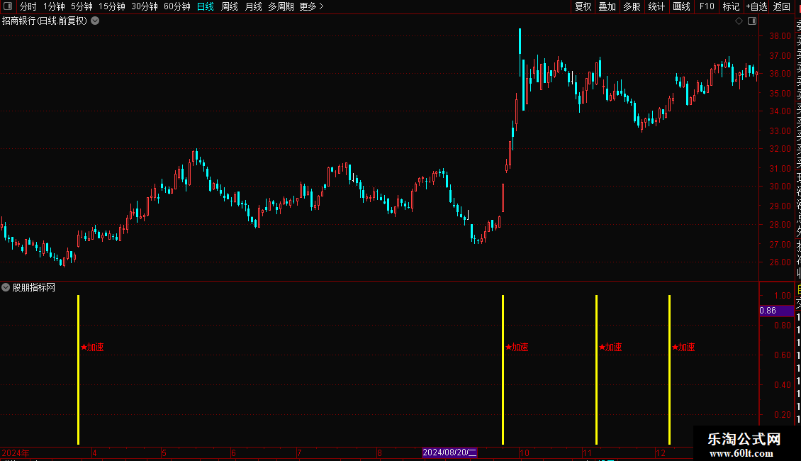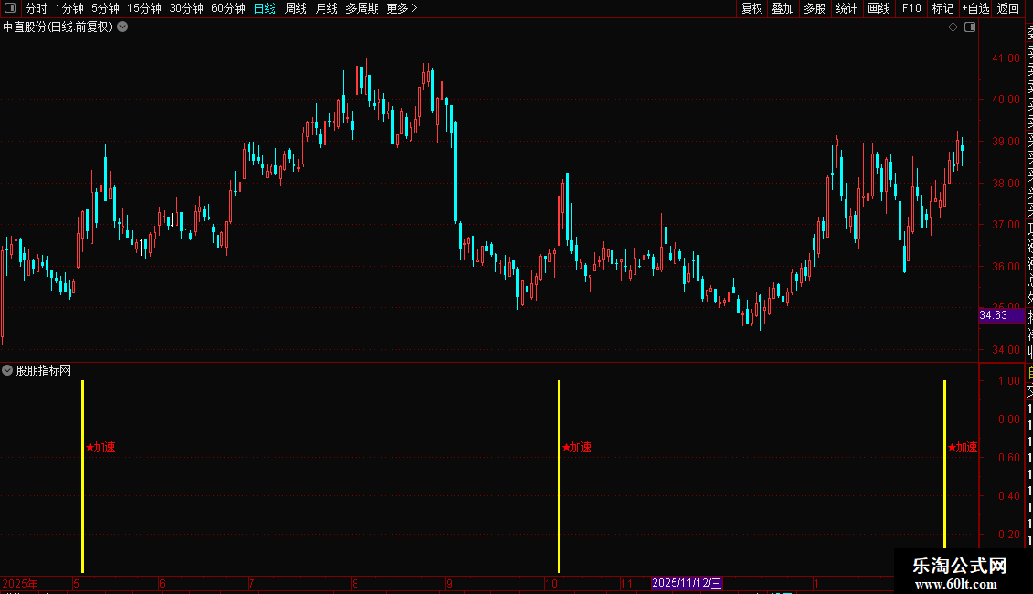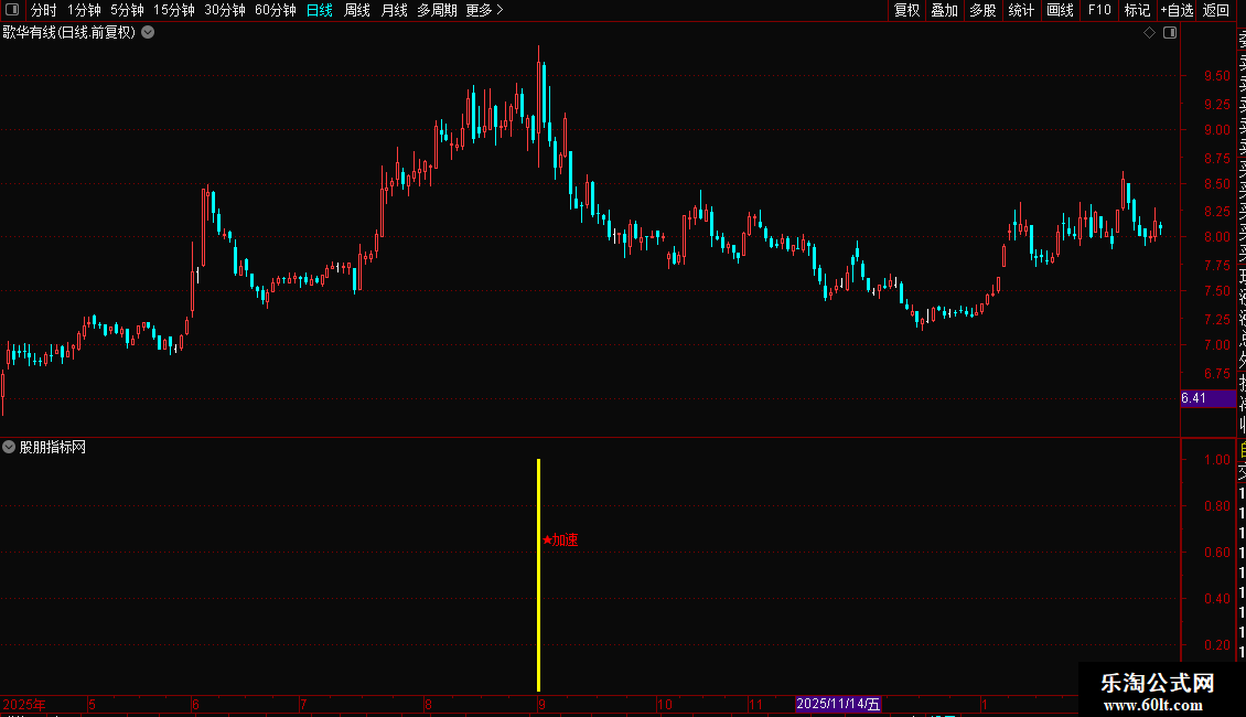 当指标在K线图上出现洋红色的柱状线并伴有“★加速”的文字提示时,表明股价已进入强势拉升区,是激进型投资者的介入良机。建议结合当时的市场热点与成交量变化进行确认,若出现信号时伴随成交量显著放大,则信号可靠性更高。稳健型投资者可等待股价回踩关键均线支撑位不破后再行加仓。止损位可设置在信号出现当日的最低价或关键均线之下。