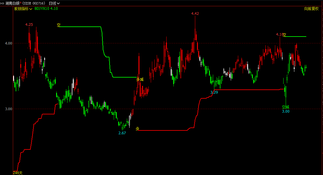 2. 买卖信号:价格触及红色支撑线且出现“多”字为做多信号,触及绿色压力线且出现“空”字为做空信号;