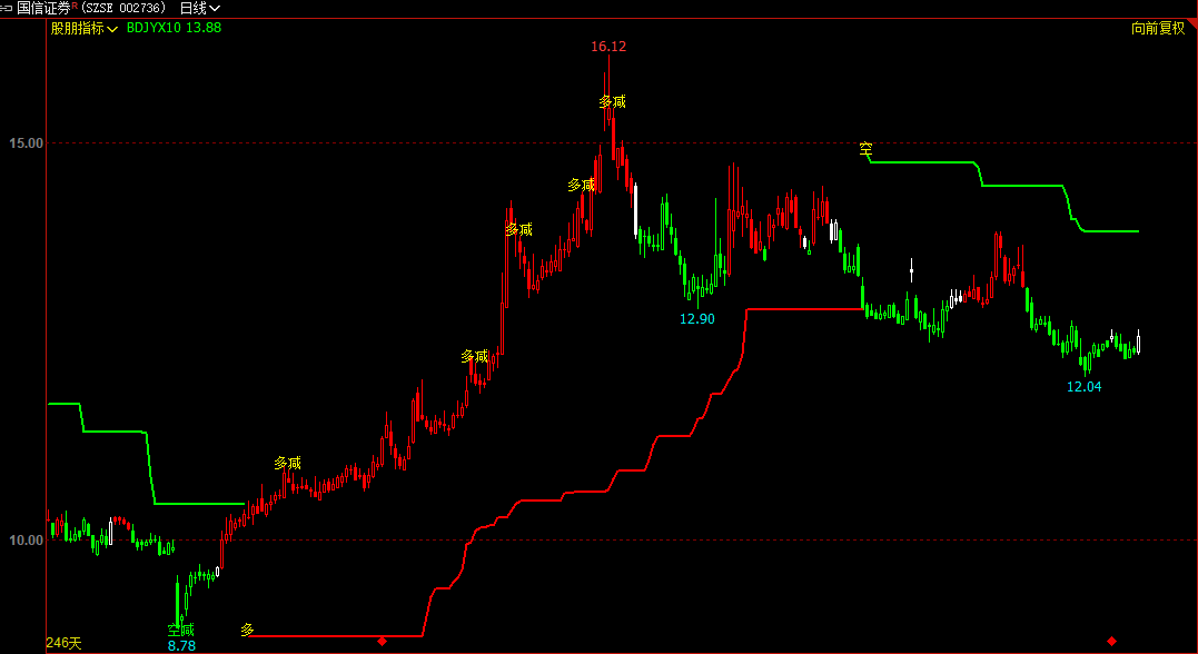 DRAWTEXT(CROSS(84,BDJYX13) AND BDJYX8< BDJYX9, HIGH,'多减'),COLORYELLOW ;
