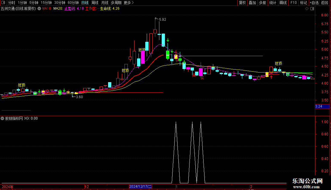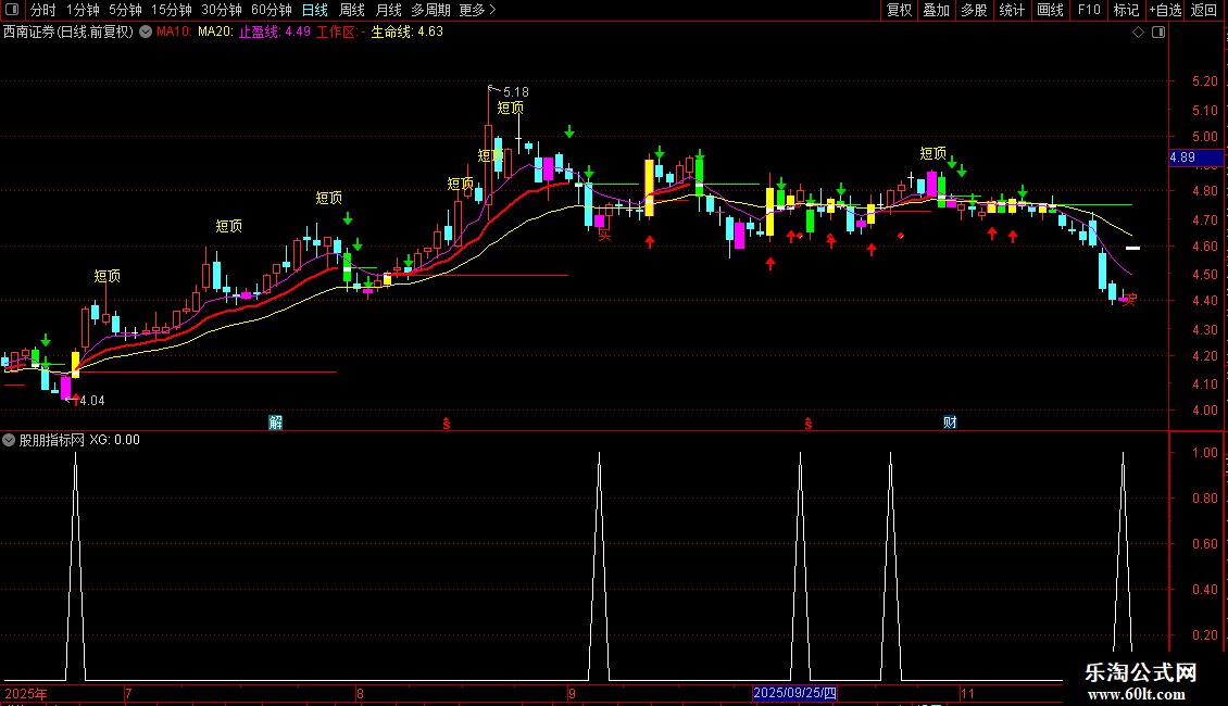 IF(CROSS(工作线,生命线),工作线*0.975,DRAWNULL),CIRCLEDOT,COLORRED;