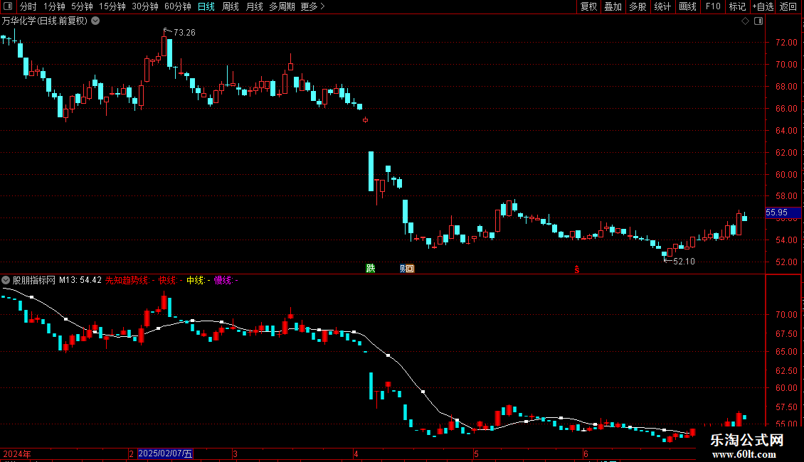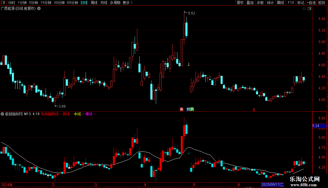 2. 多空趋势线:提供“先知趋势线”(34日均线)以及由快线、中线、慢线构成的一组短期趋势线,用于判断价格的中短期趋势方向。