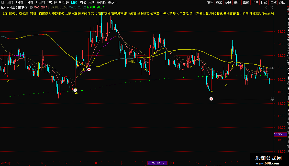 DRAWTEXT(筹峰9,O*0.97,'▲'),COLOR00FFFF;