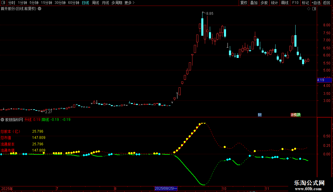 1. 财务数据显示:在画面左上角固定位置显示总股本、总市值、流通股本、流通市值四项关键财务数据,数值以亿为单位。
