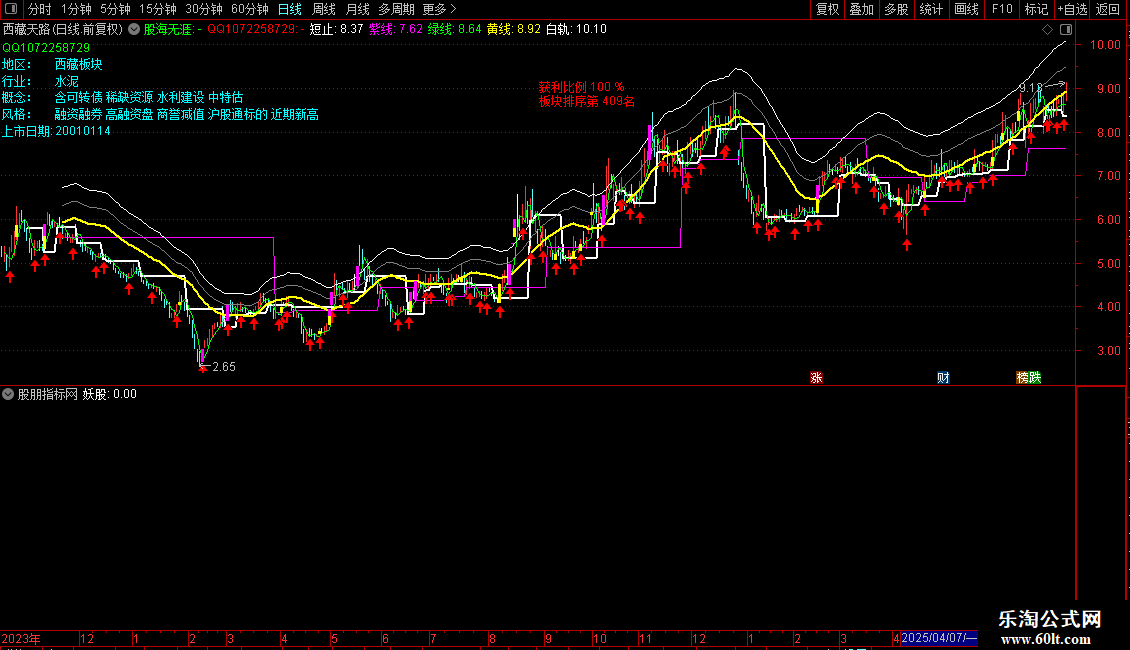 2. 牛股起爆指标:用于捕捉“牛股”的启动信号。它结合了“妖股”信号出现后的时间窗口、价格站上“黄线”以及特定的均线金叉与放量条件。
