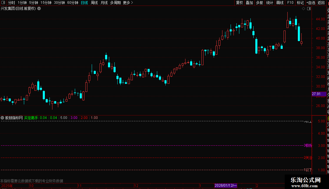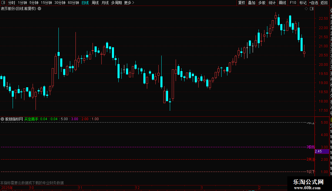 核心计算基于机构持股比例与流通盘的比值,以数值形式在主图区域显示。数值通过不同颜色和位置进行可视化区分:低于1为绿色,表示空仓观望;1-2之间为绿色粗线;2-3之间为红色粗线,提示关注;3以上为紫色粗线,表示极好状态;超过5则用紫色柱状线警示出货风险。