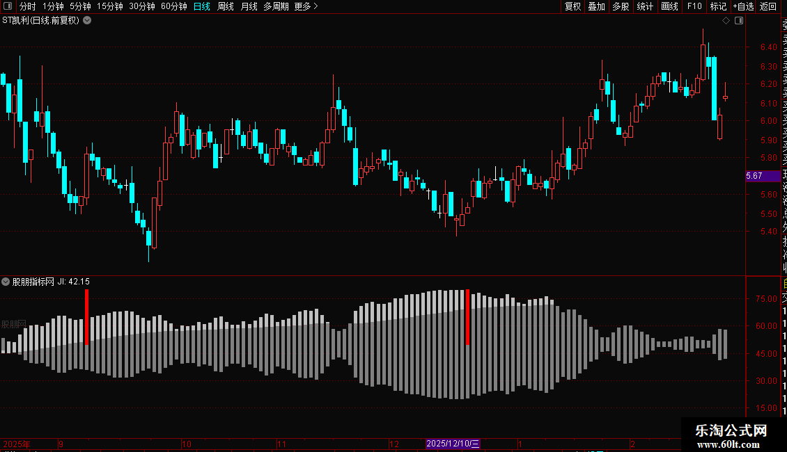 打开个股K线,调出极致爆发副图。出现以下特征即可买入持有: