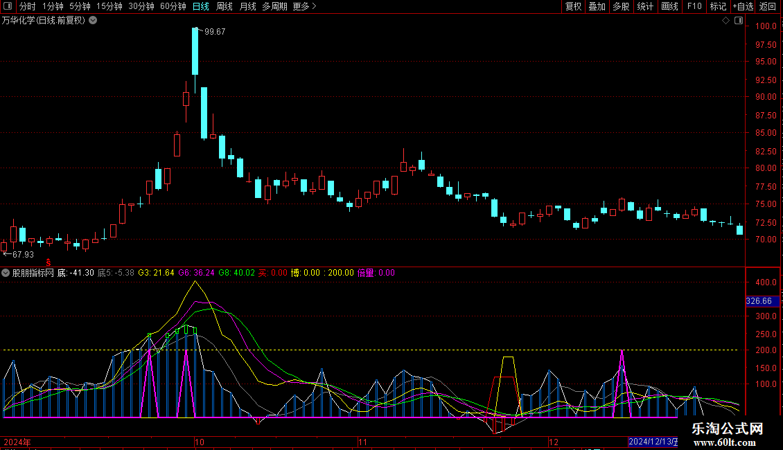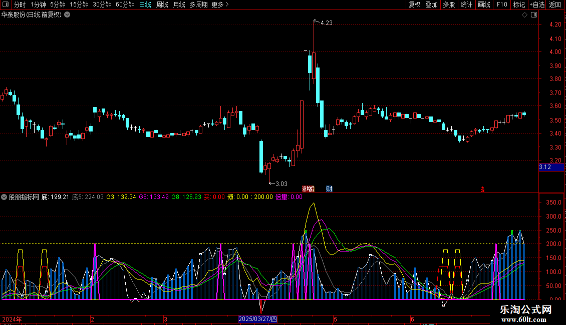 倍量:IF((G6>G8 OR (G8<50 AND G3>G6 AND G6>REF(G6,1))) AND G3>REF(G3,1) AND 底5>REF(底5,1) AND 量,200,0),COLORMAGENTA,LINETHICK2;