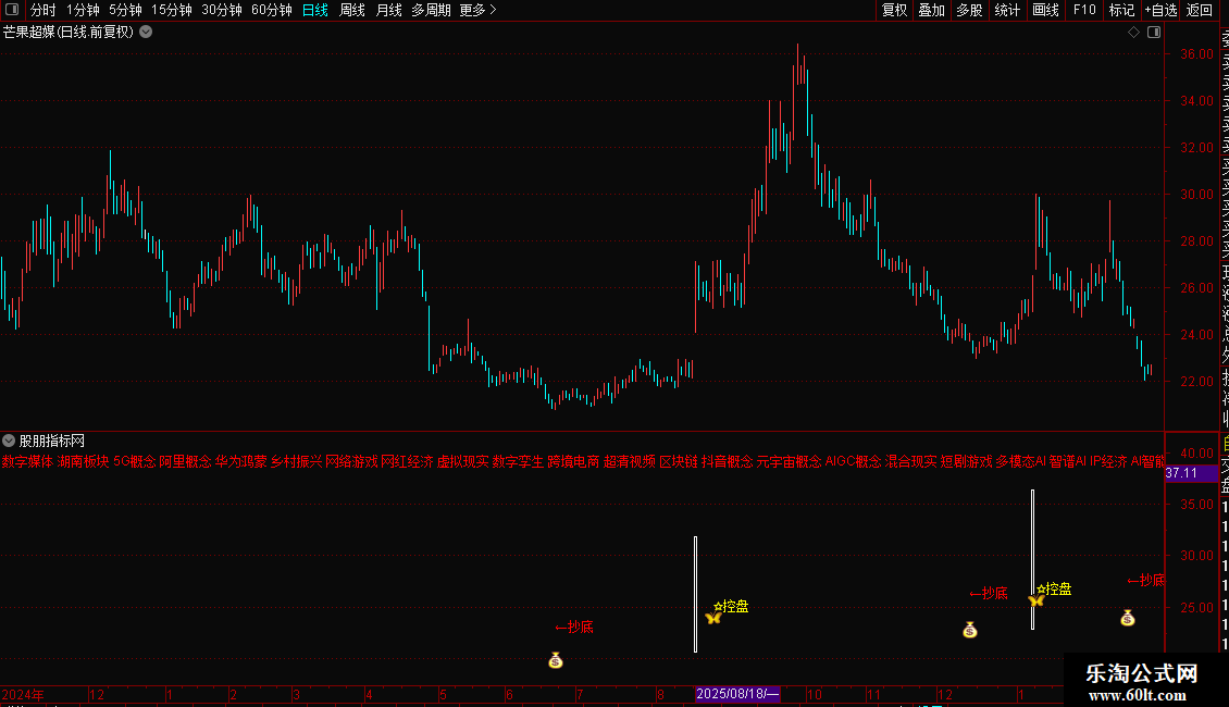 DRAWTEXT(BARSLASTCOUNT(X_CQ)=1,1.097*H,'←抄底'),COLORRED;