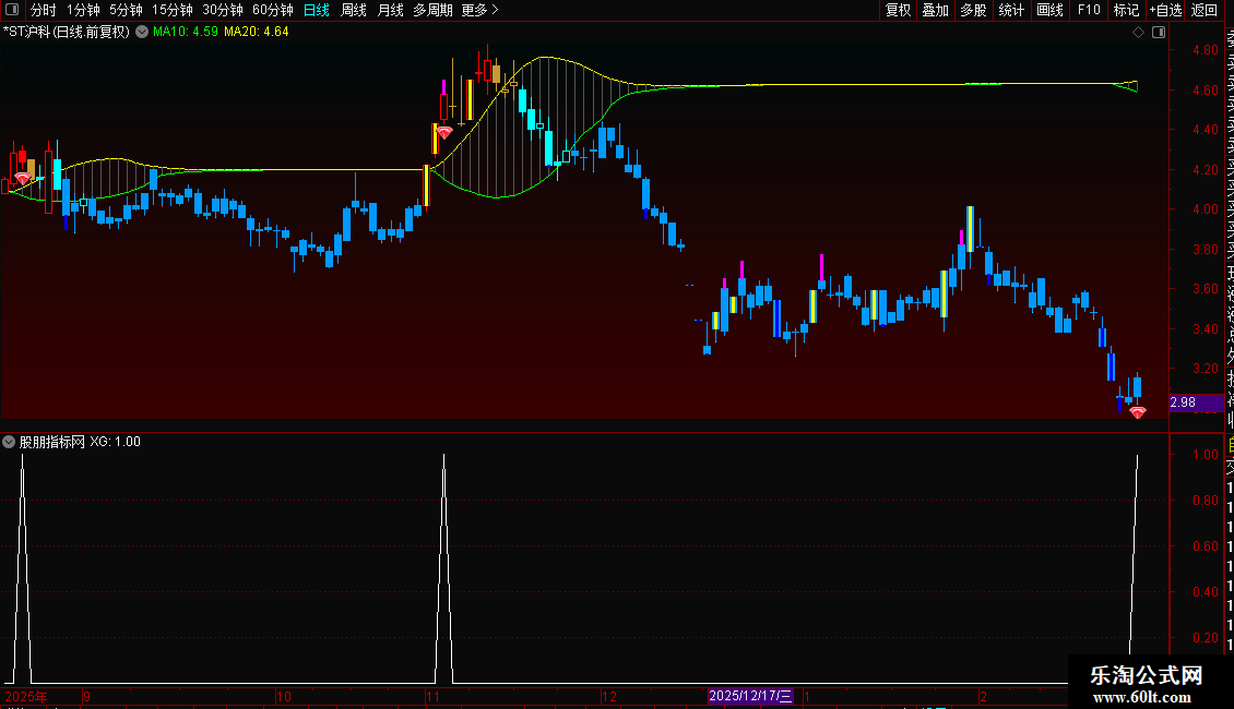 2. 副图公式:出现红色柱体时,对应主图反转信号,可确认趋势拐点。