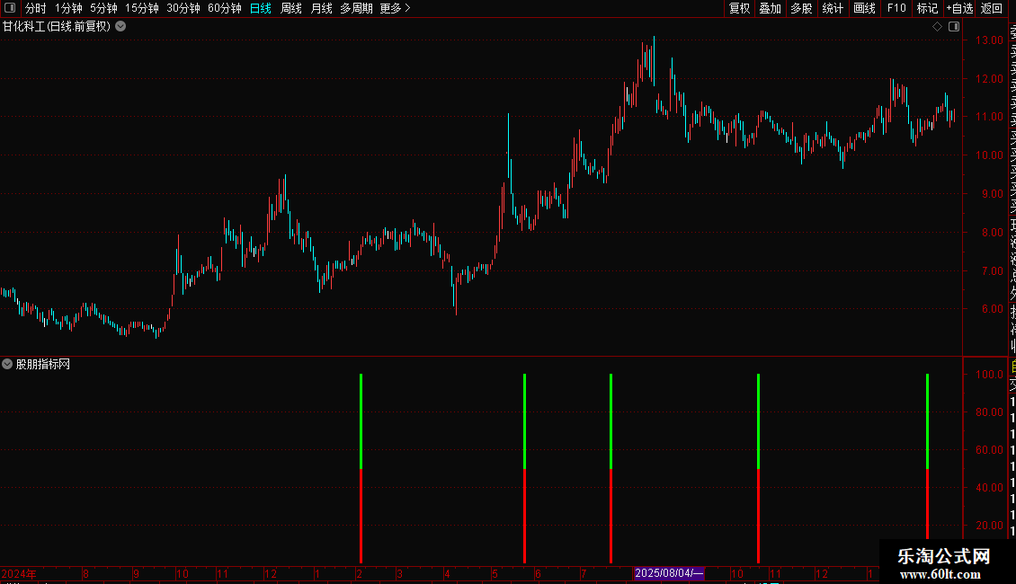 信号解读:当图表上出现红色和绿色的柱状线时,代表系统发出了一个潜在的买入信号。这表明该股在强势背景下完成了“先跌后涨”的形态转换,可能即将开启新一轮上涨。