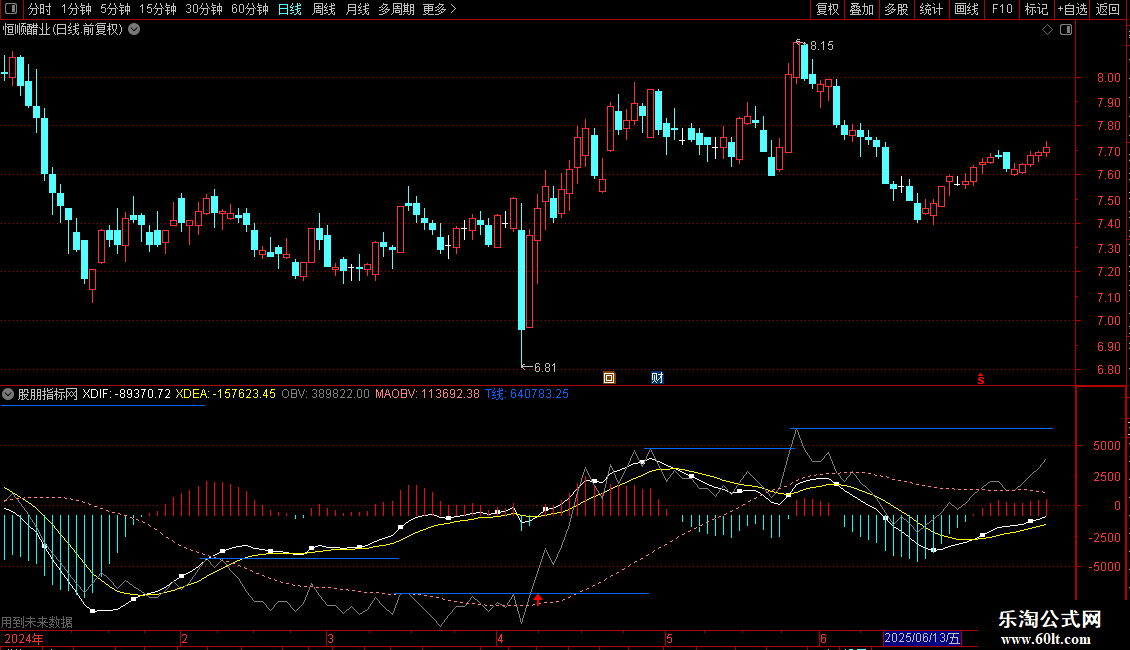 OBV:SUM(IF(CLOSE=REF(CLOSE,1),0,VA),0)COLORGRAY;