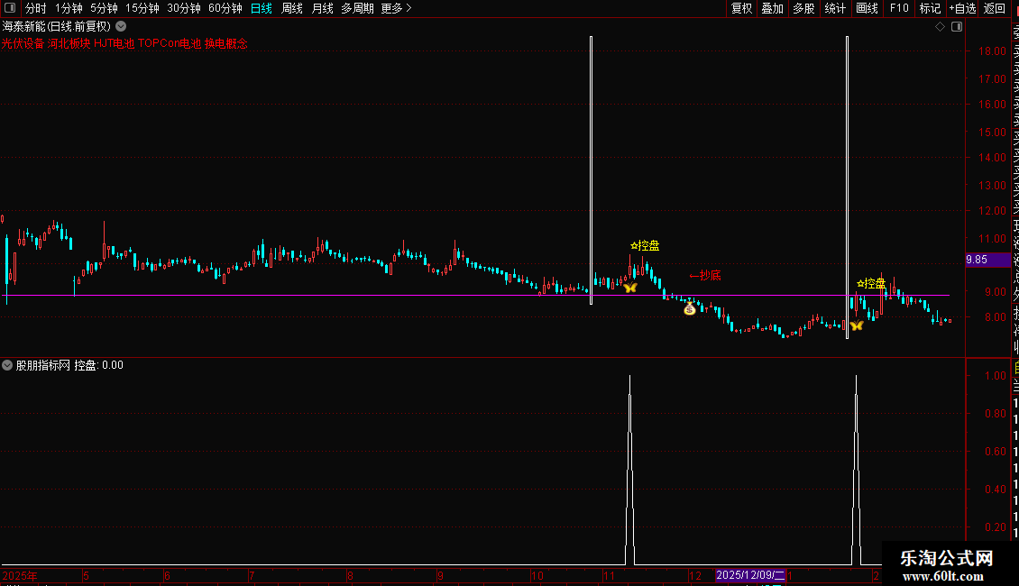 3. 抄底信号看红色标识,控盘信号看黄色“☆控盘”标识,实战中可结合量能验证信号有效性。