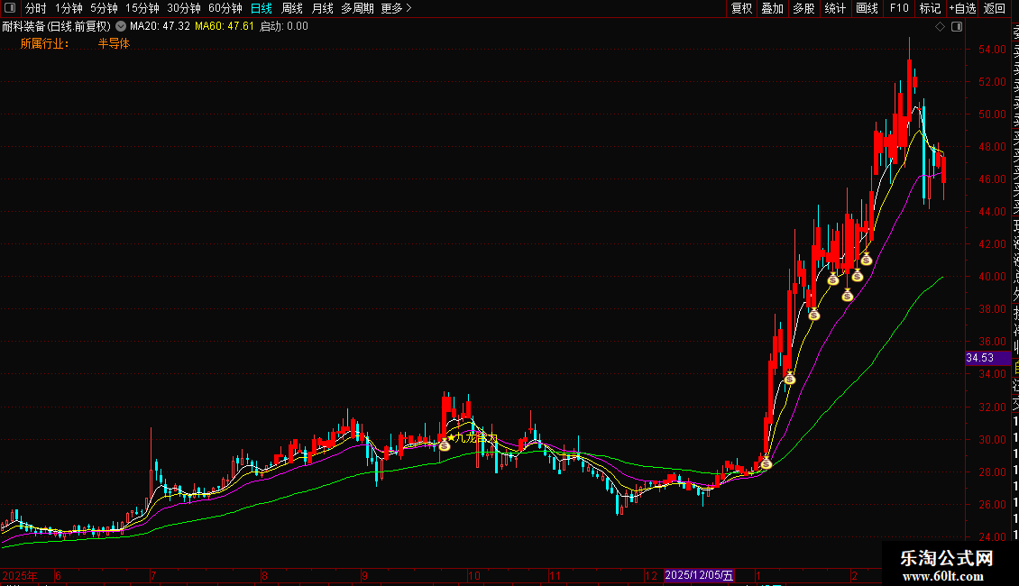 3. 实战要点:信号出现后,结合所属行业(公式顶部显示)判断题材热度,优先布局行业强势+信号共振的个股,信号过滤周期为10天,避免频繁触发,提升操作胜率。