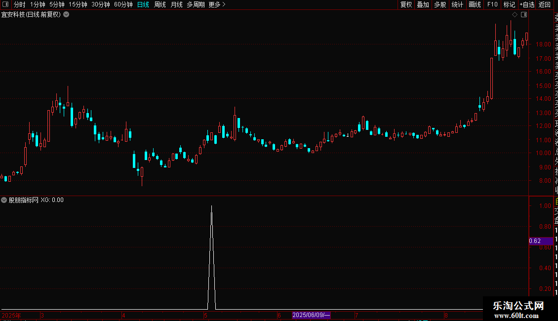 XG: A1>A2 AND A2>A3 AND A1>REF(A1,1) AND A2>REF(A2,1) AND A3>REF(A3,1) AND crOSS(MA(C,5),MA(C,60)) AND C>MA(C,60) AND 角05>70 AND 角10>60 AND 角20>45 AND COUNT(MA(C,60)>REF(MA(C,60),1),5)>3 AND O>REF(C,1);