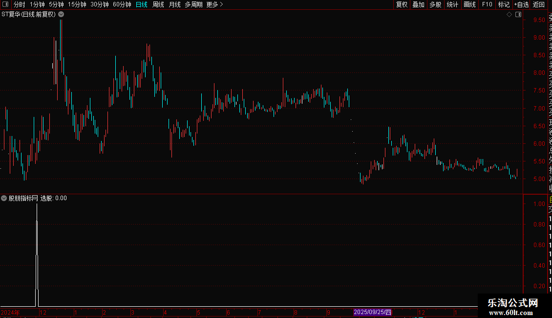 2. 加载后,指标会标记符合“选股”条件的信号点。