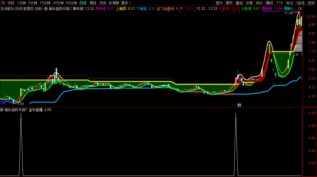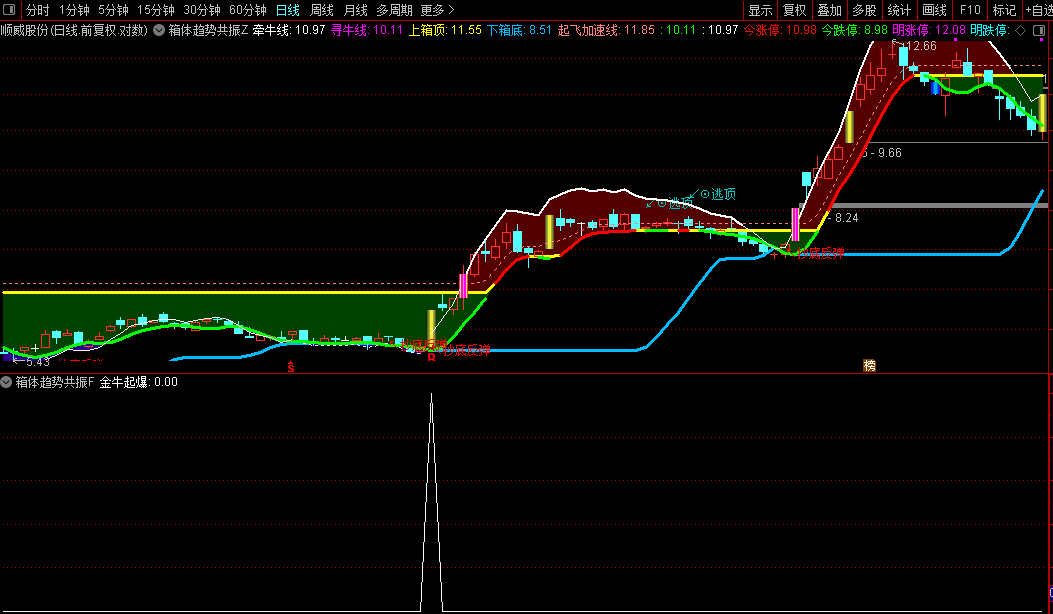 趋势线(牵牛线/寻牛线): 用于监控股价趋势,辅助判断多空转换。