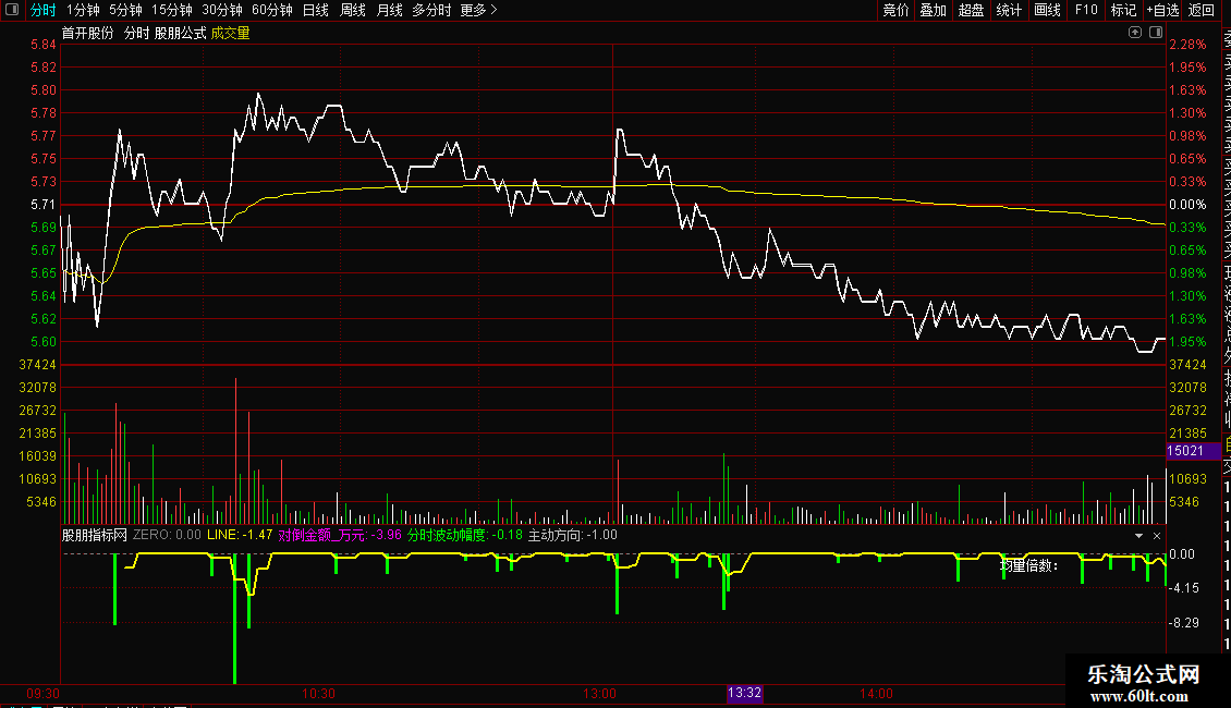 需在 “分时图” 或 “分钟 K 线” 周期下使用(如 5 分钟 K 线),日线周期下参考意义低。