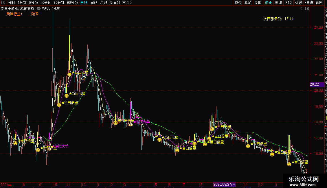 指标主要功能是辅助短线交易,实时显示个股所属板块及次日理论涨停价,帮助投资者预判空间。核心策略是通过均线系统和特殊算法,识别“倍量阳线”与“游资大单”进场信号:当出现黄色柱体提示当日倍量时,关注主力建仓迹象;若出现紫色柱体并标注“游资大单”,则意味着资金强势介入且形态突破,是更明确的短线追涨买点。