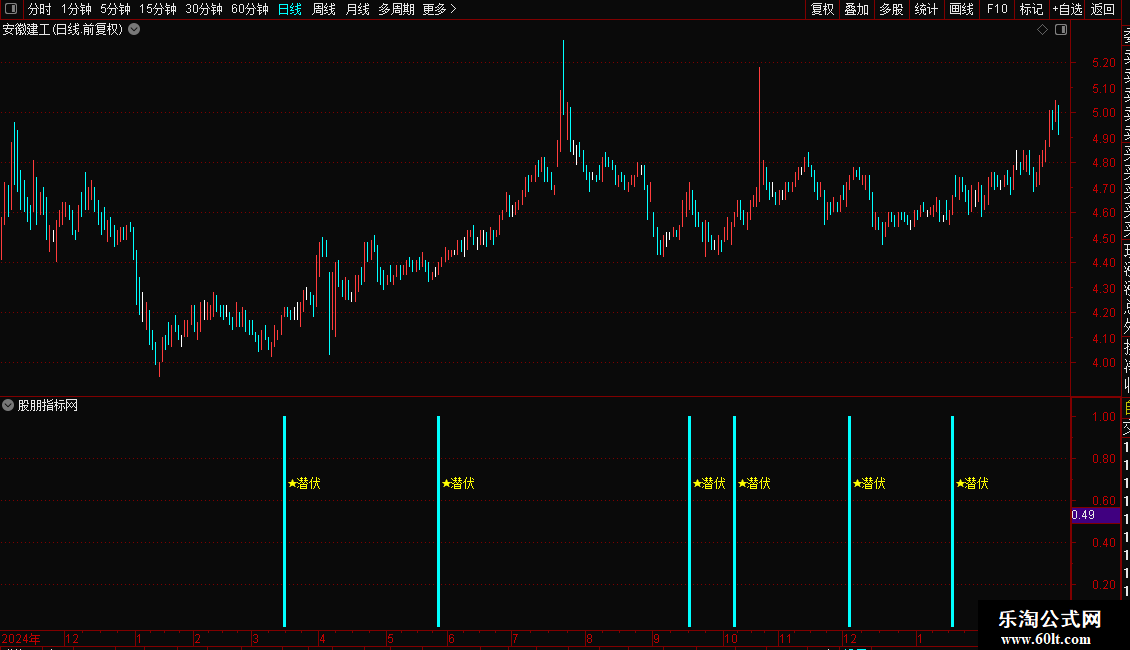 1. 副图指标:在通达信K线副图加载公式,出现“★潜伏”信号时,结合量能判断波段介入点;