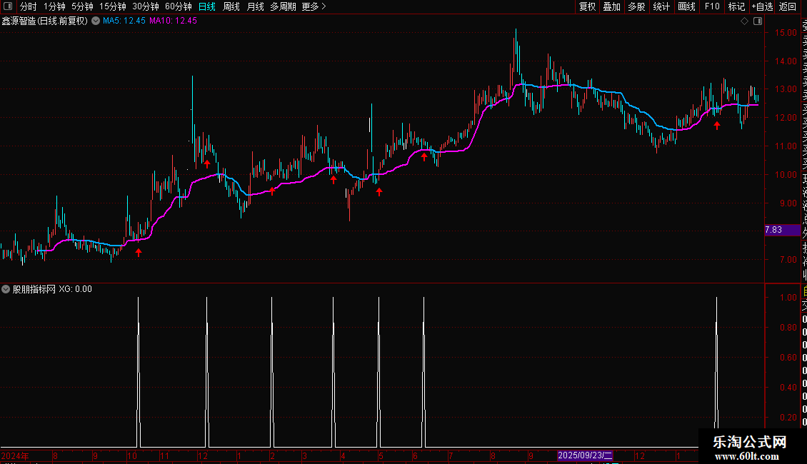 操作策略:只有当股价站稳趋势线之上,且短线指标在低位形成黄金交叉时,才发出买入信号。这旨在确保只在上升趋势的回调低点介入,避免在下跌趋势中盲目抄底,追求高胜率的反弹行情。