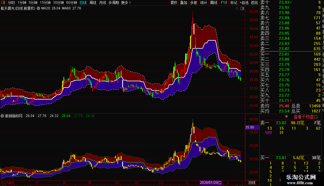 DRAWBAND(上轨,RGB(100,0,0),中间,RGB(45,0,140));