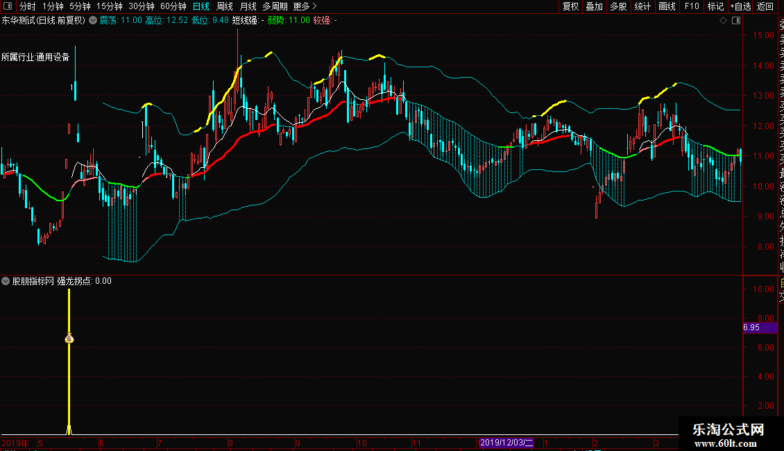 信号介入: 当副图出现黄色柱状线或图标(强龙拐点)时,代表系统捕捉到了“连阳+涨停”的爆发形态。这通常被视为短线加速的信号,可结合成交量变化考虑跟进。