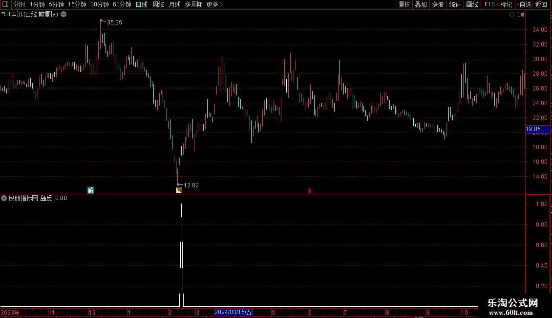 2. 信号输出:当“岛反”条件满足时,指标会输出信号,提示可能形成底部岛形反转。