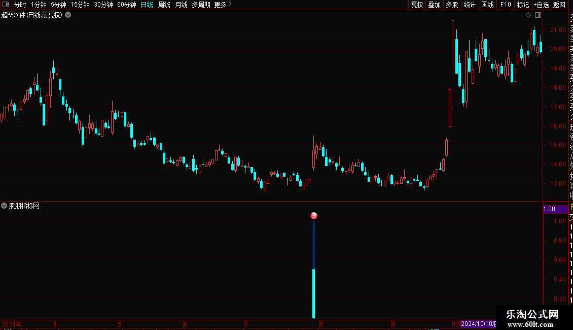 指标旨在捕捉短期超跌后的强势反弹机会。主要功能是通过监测股价与均线的偏离度及动量变化,识别主力洗盘结束的瞬间。操作策略上,当股价经历连续小幅回调或快速杀跌后,一旦突然出现大幅上涨并伴随指标发出彩色柱状及图标信号,即为最佳买入点。这通常意味着空头力量耗尽,多头开始强力反攻,适合激进型投资者进行短线狙击,博弈快速拉升行情。