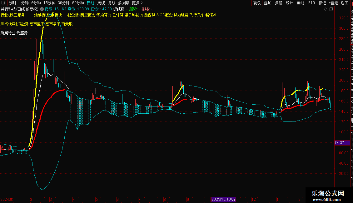 较强:IF(EMA(CLOSE,12)>=EMA(CLOSE,34) AND EMA(CLOSE,34)>=REF(EMA(CLOSE,34),1),EMA(CLOSE,34),DRAWNULL),COLORLIRED,LINETHICK2;