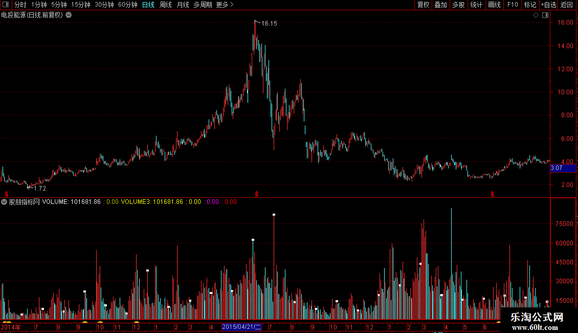 4 该公式没有加入量能因素,在实际操盘中我们要注意回调过程中最好是缩量的,放量的坚决不要(这条很重要,需要重点理解,配合上面的量堆和地量操作效果非常好)