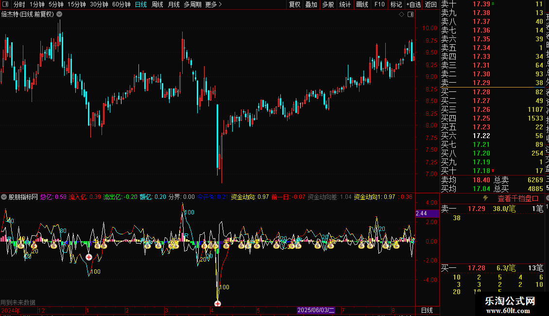 3. 实战应用:结合股价位置,当资金净流入柱体持续放大且伴随“牛”字信号,可择机入场;资金净流出柱体扩大且出现青色转向数值,需及时止盈止损。