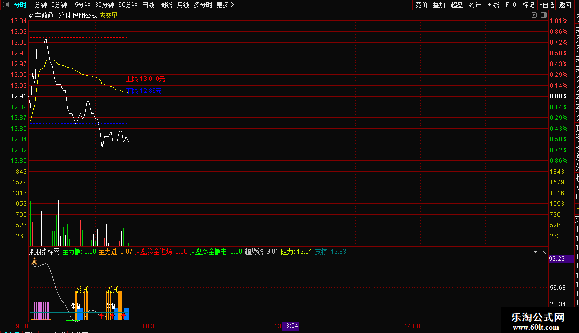 指标主要用于分时图做T交易,核心功能是监控主力与大盘资金流向,并识别超买超卖点。操作策略上:当出现“准备”或“委托”信号且趋势低位拐头时,结合支撑位买入;当显示“见顶清仓”信号或股价突破阻力位时,果断卖出止盈。同时参考主力资金红绿柱变化,顺势跟随主力进场,避开资金撤离场。