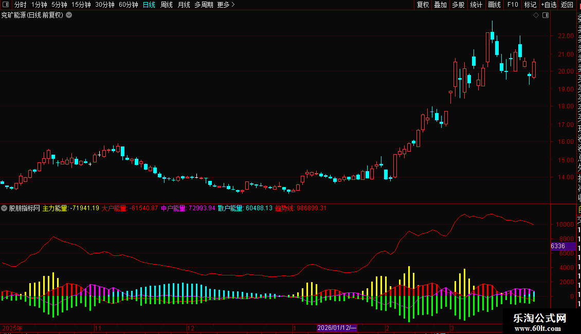 STICKLINE(中户能量>=0 AND 中户能量< REF(中户能量,1),2,2+中户能量,1/3,0),COLORMAGENTA;