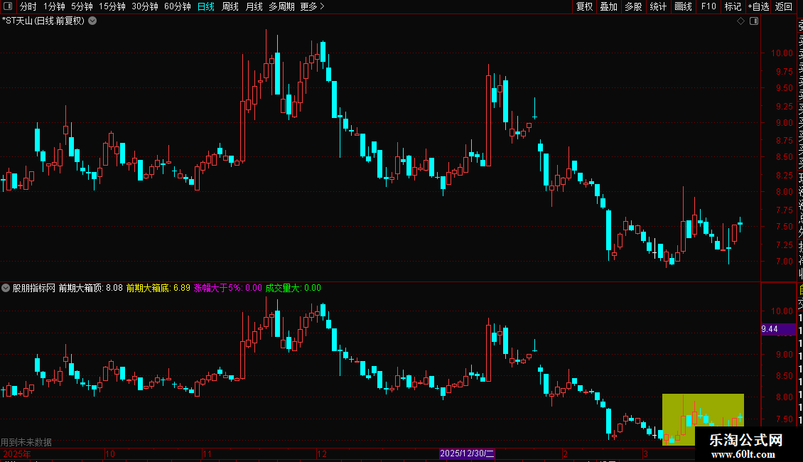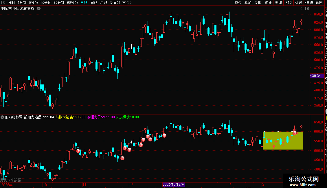 1. 绘制箱体:自动识别近期的高低点,形成一个箱体区间,并用色带标注。
