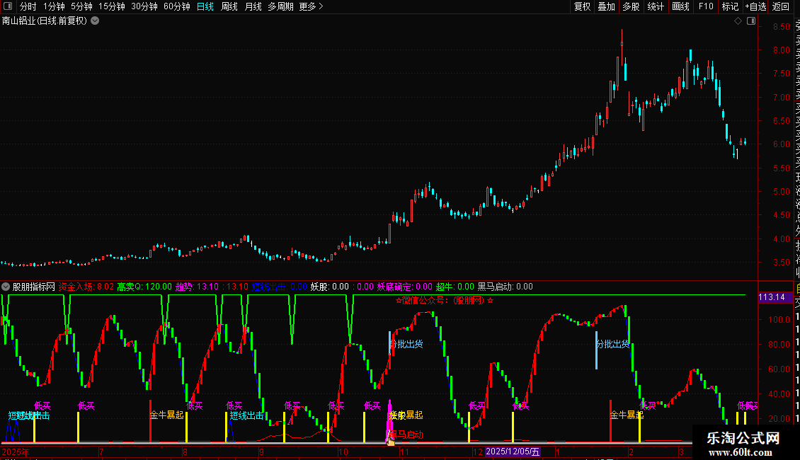 4. 出现“分批出货”提示,结合正向位置>48、综合极值>60,需及时止盈;