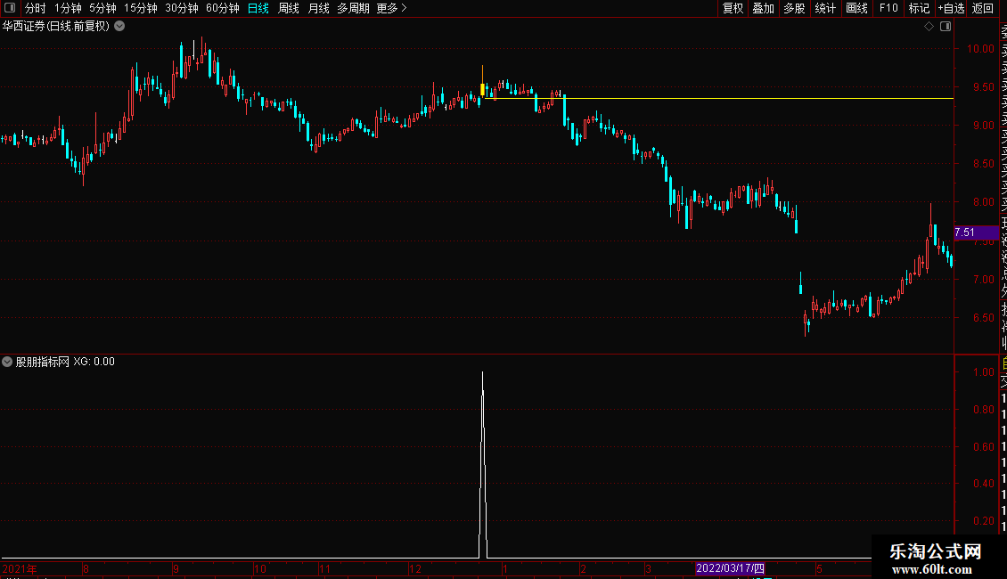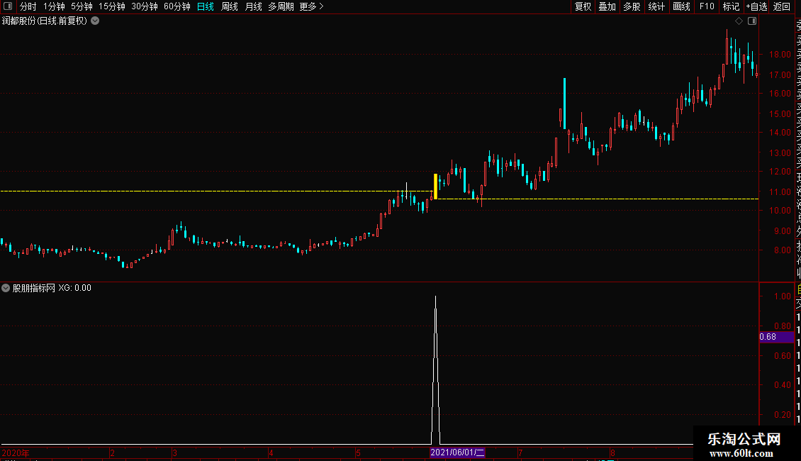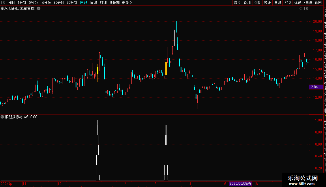 STICKLINE(XGDAY>0,REF(L,XGDAY),REF(L,XGDAY),3,0),COLORYELLOW;