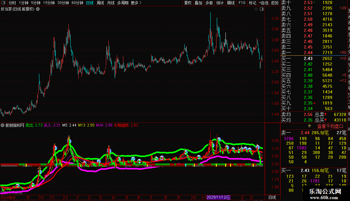 2. 多空趋势:结合多条均线(如5、13、34、55、89、144日)和“长期趋势”线,判断市场整体多空方向。